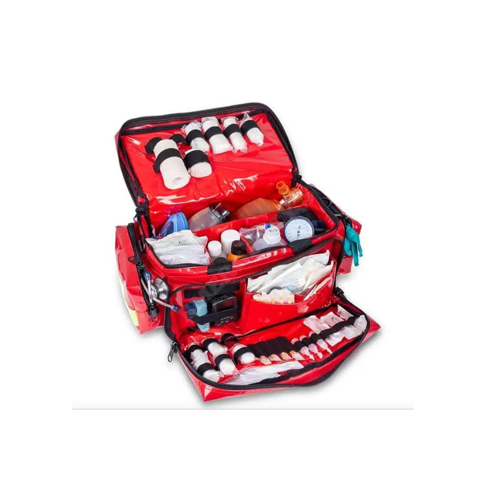 Nødveske med høy kapasitet designet for å bære en rekke førstehjelps- og nødforsyninger. Den har fire indre mellomrom og et langrom med høy kapasitet.